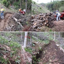 ①北側尾根北斜面から玉切材を作業道に搬出
