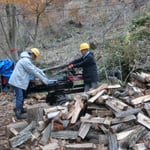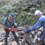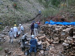 ②北側で玉切り材の搬出と薪割り