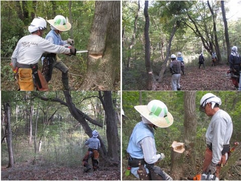 ●内容 ①山の玉切り及び降ろし