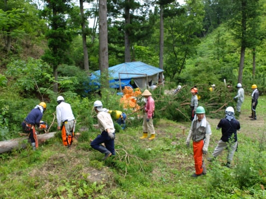 本日は梅雨の晴れ間で蒸し暑い日でありましたが、今までの伐倒技術の成果を試す良い機会でもあります。今回で第3回目となり4人の方が伐倒コンテストへ挑戦いたしました。挑戦者は多少、緊張しておりましたが、多くの会員の仲間の激励を受けて楽しく過ごすことができました。会員同士、気持ちよい汗を流すことができました。皆さま、大変ごくろうさまでした。