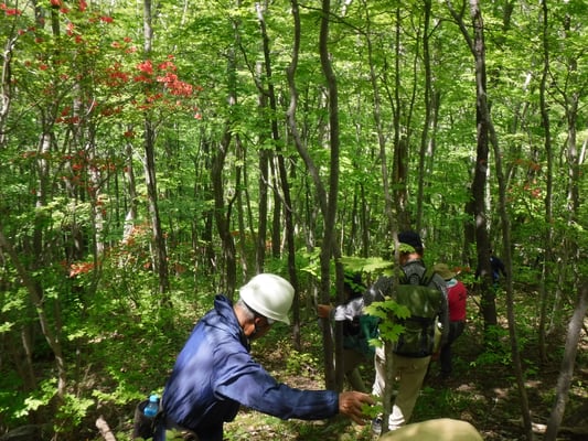 皆伐萌芽更新は、地球環境問題の一つである生物多様性の保全に貢献することになります。本日は会員や一般の方々と一緒にハイキングをしながら山野草を楽しみながら森の自然の大切さを知ることができました。
