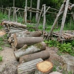 ●内容 ①北側斜面の玉切り材の搬出と運搬②玉切り材の玉切り&薪割り&薪棚への格納を行いました。