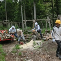 木場にて、マイペースで玉切りを行いました。