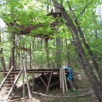 壊れた薪棚を前回解体しましたが、今回簡易的な薪棚を解体場所に設置しました。三本倒し皮を剥いだ杉材の内二本を天辺から8mを新たな薪棚(4m)に利用させて頂きました。本日のB作業に参加されました方々、お疲れ様でした。